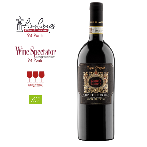 Toscana IGT "Lam'Oro" intends to tell, already in the name, its peculiar origins; it was born, in fact, on the slopes of Lamole, from high-altitude vineyards, on a real "terrace" overlooking the Chianti Classico. The bottle is then embellished with a gold leaf (hence the reference in the name) and anticipates all the preciousness of its content; complexity, depth and dynamism characterize this wine, full expression of the native territory.